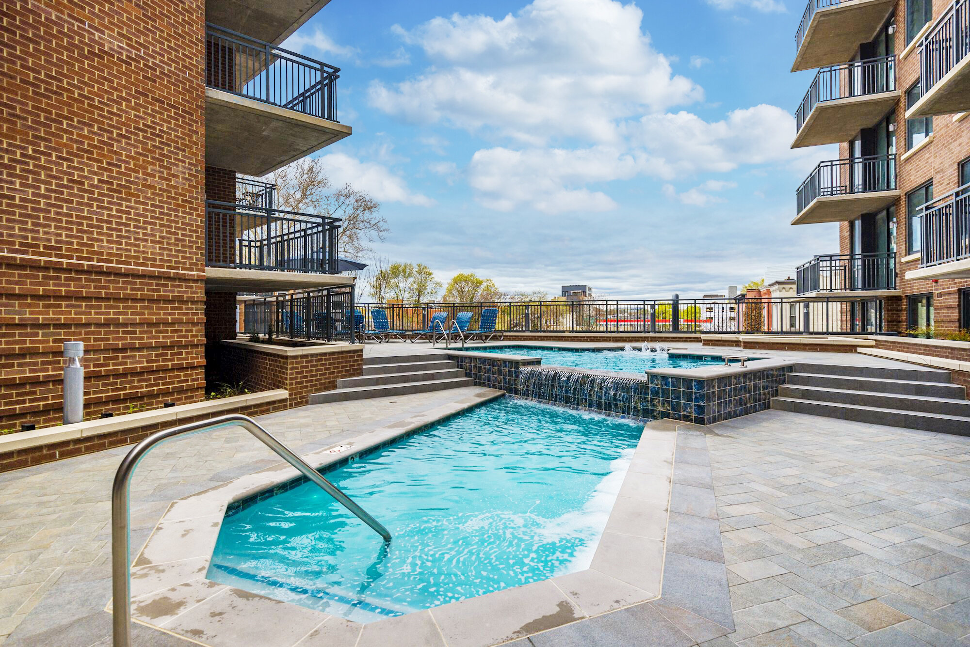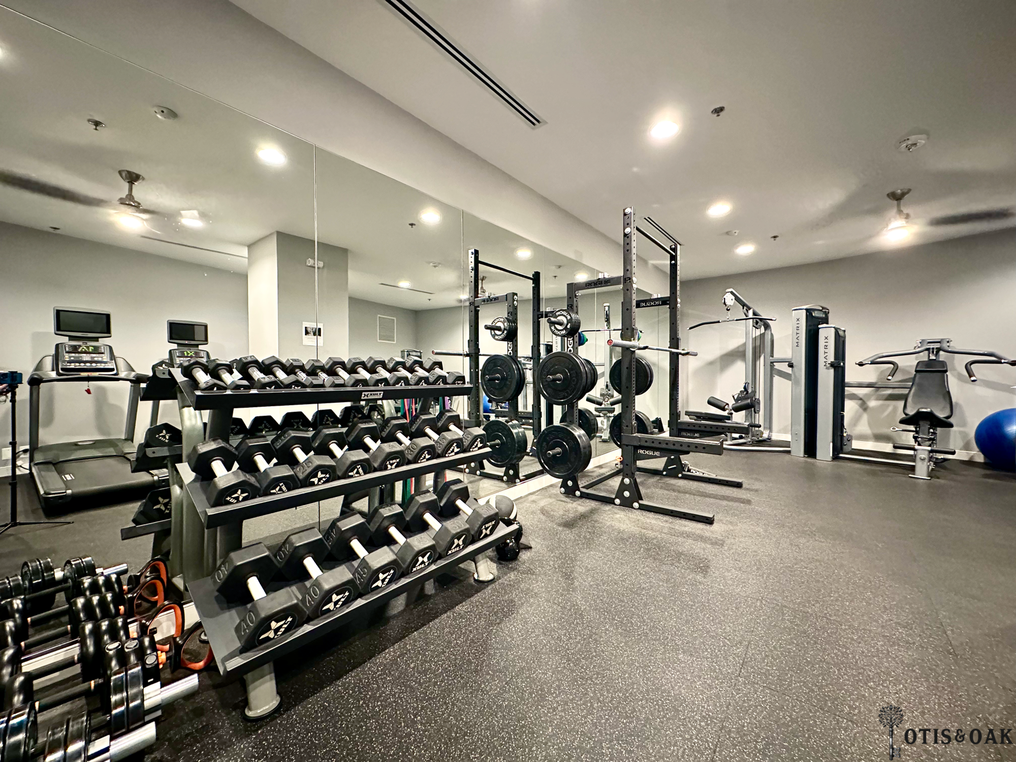The building is packed with amenities, including a pool, gym, business center, event room, indoor bike storage, secure package room, and 24/7 front desk concierge.