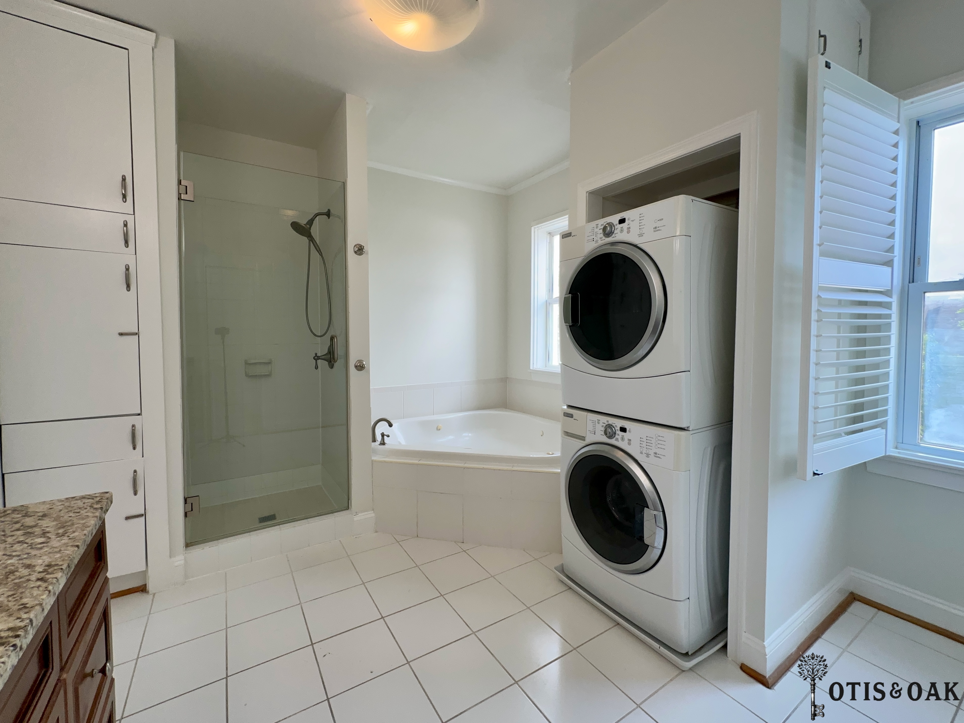The entire top floor is a stunning primary suite with a huge closet system and a massive private bathroom including a jacuzzi and washer/dryer.