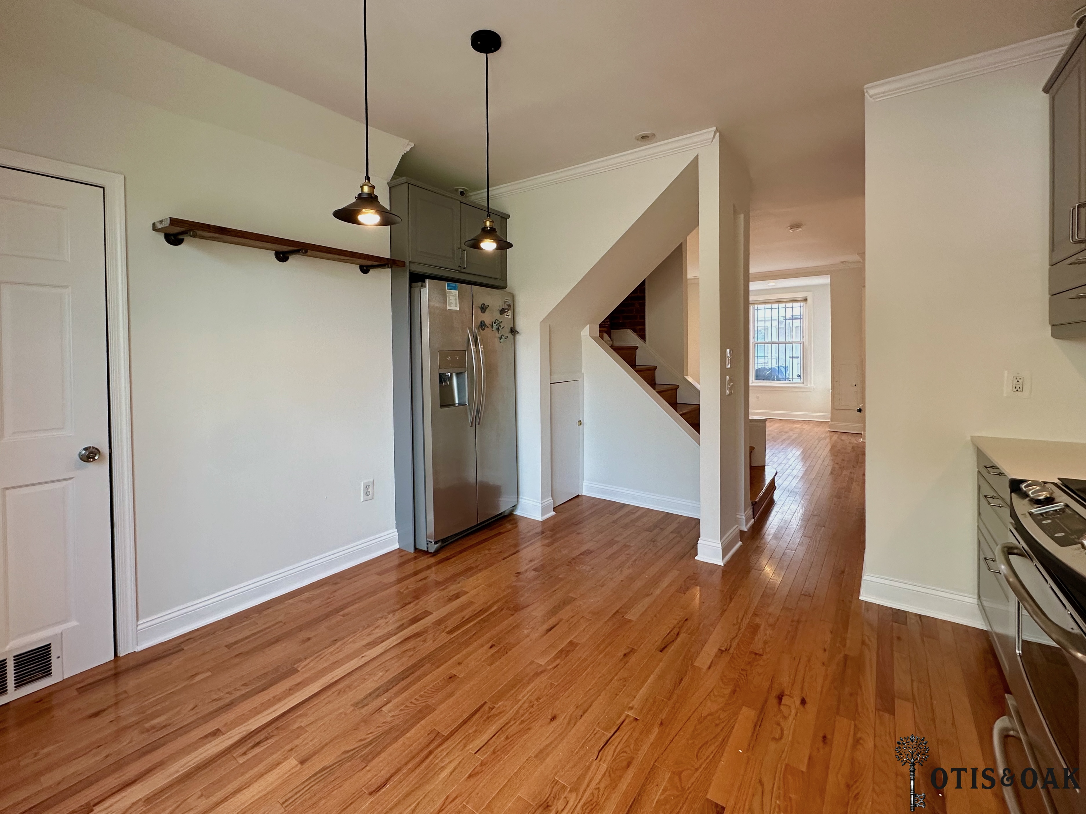 Hardwood floors, large windows, and central heating/AC throughout. Comes with washer/dryer and all stainless-steel appliances.