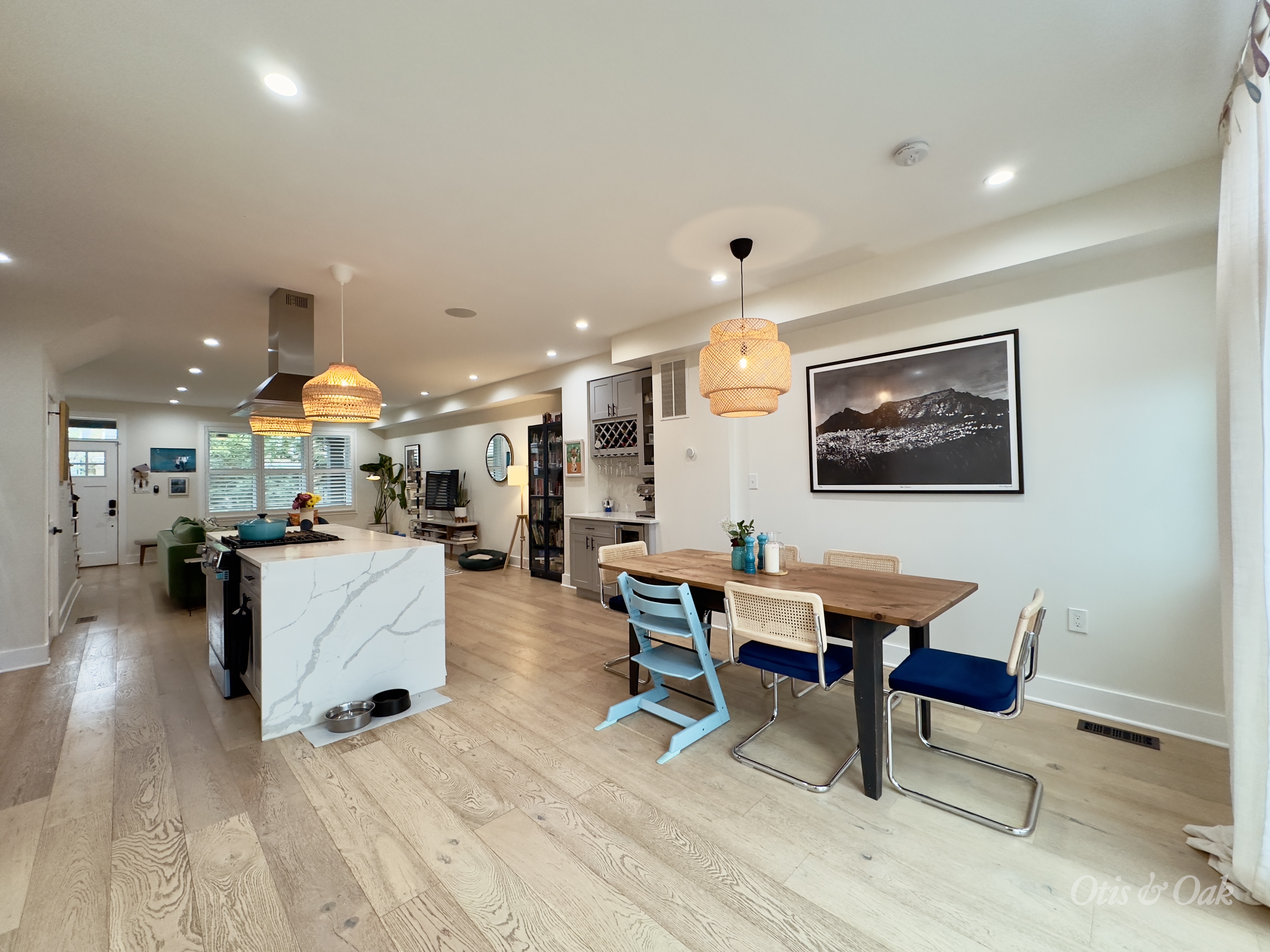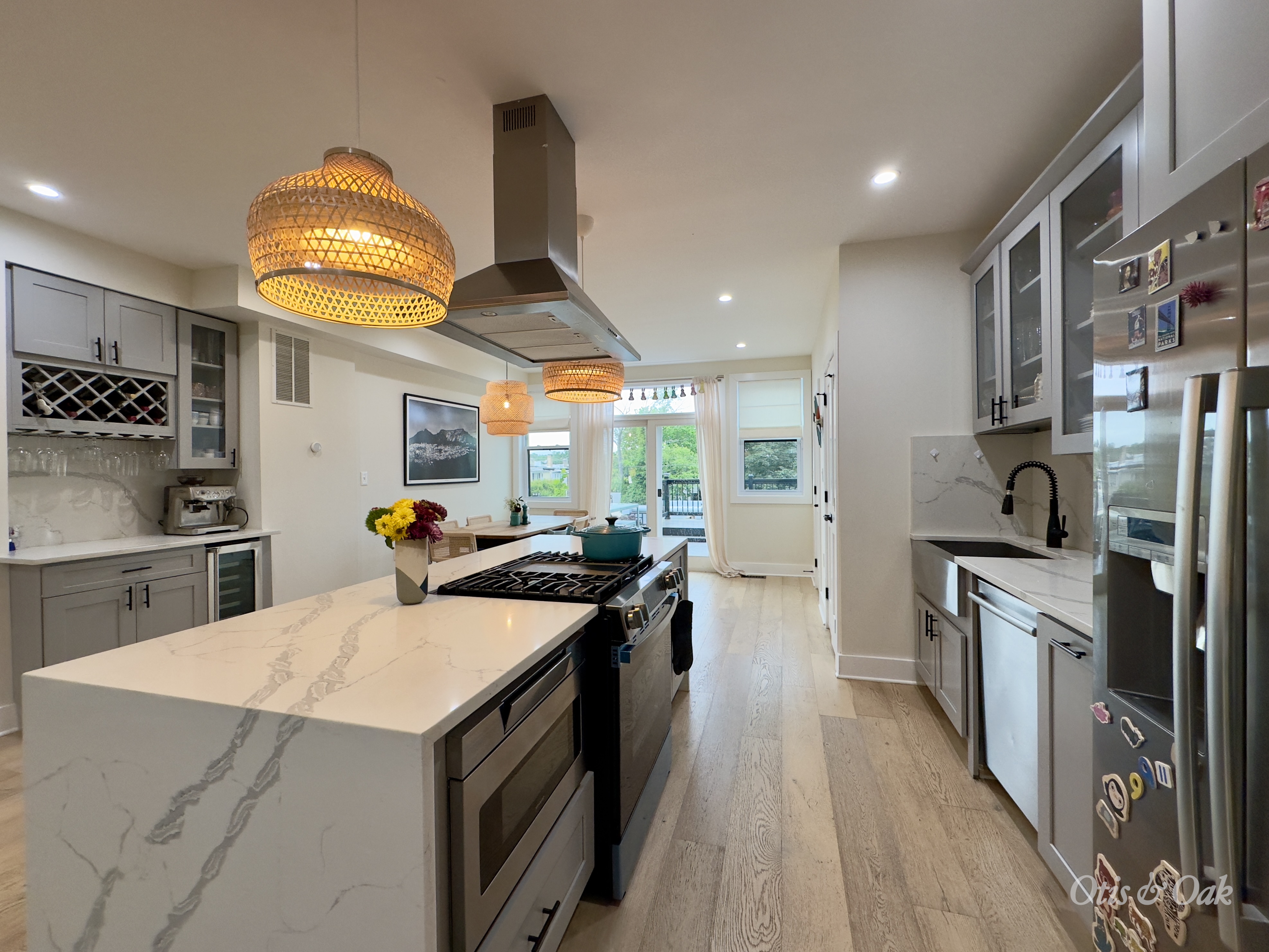 Step inside to a bright and airy open-concept main floor with oversized living and dining areas, wine bar, pantry, and powder room.