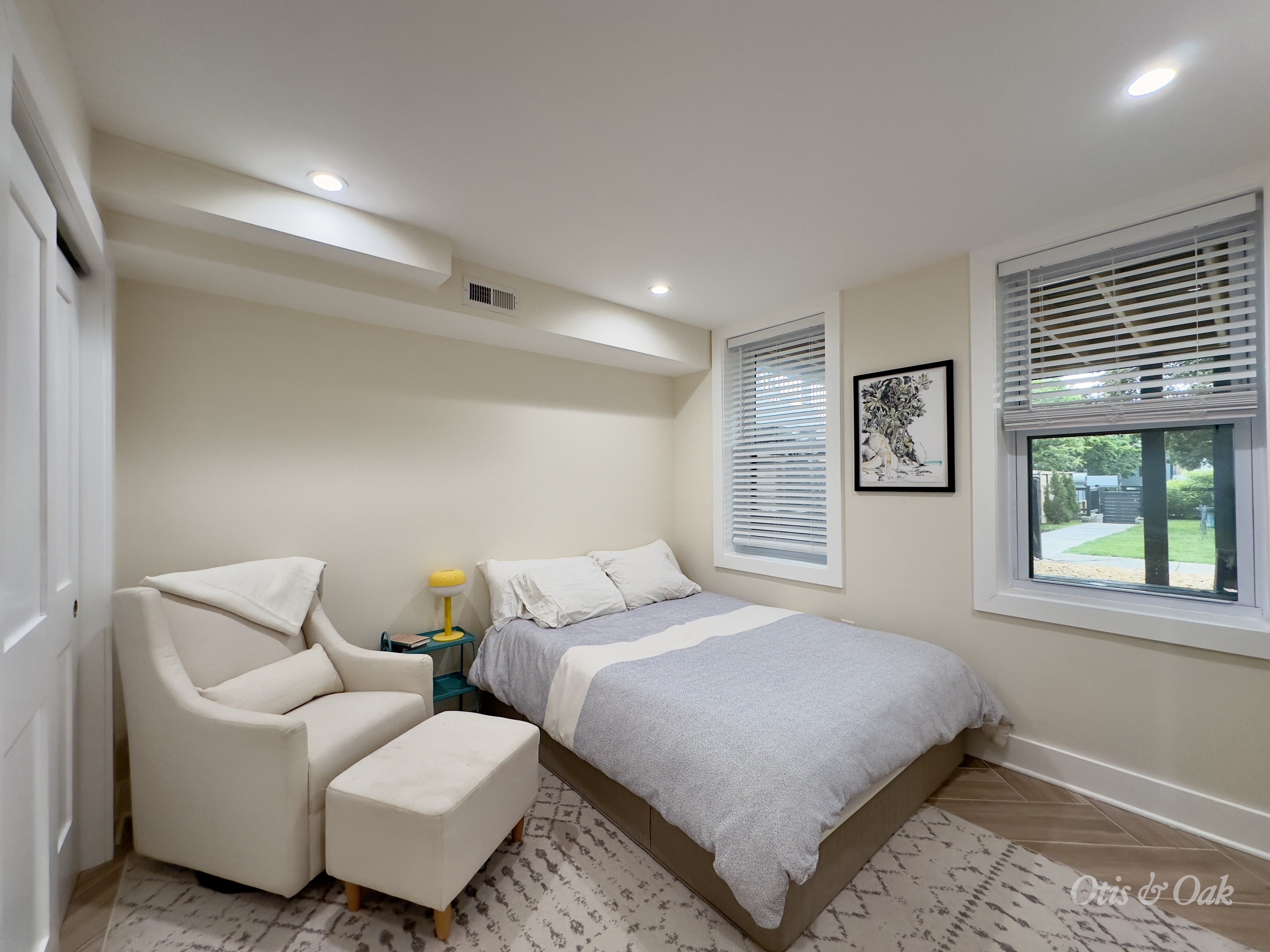 The fully finished basement has tall ceilings and total flexibility for a media room, playroom, music studio, or oversized office.