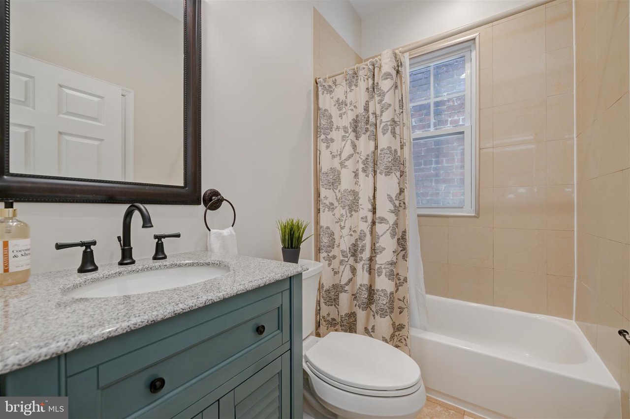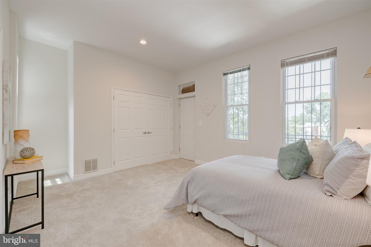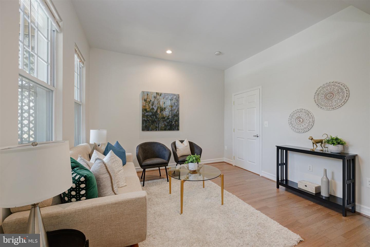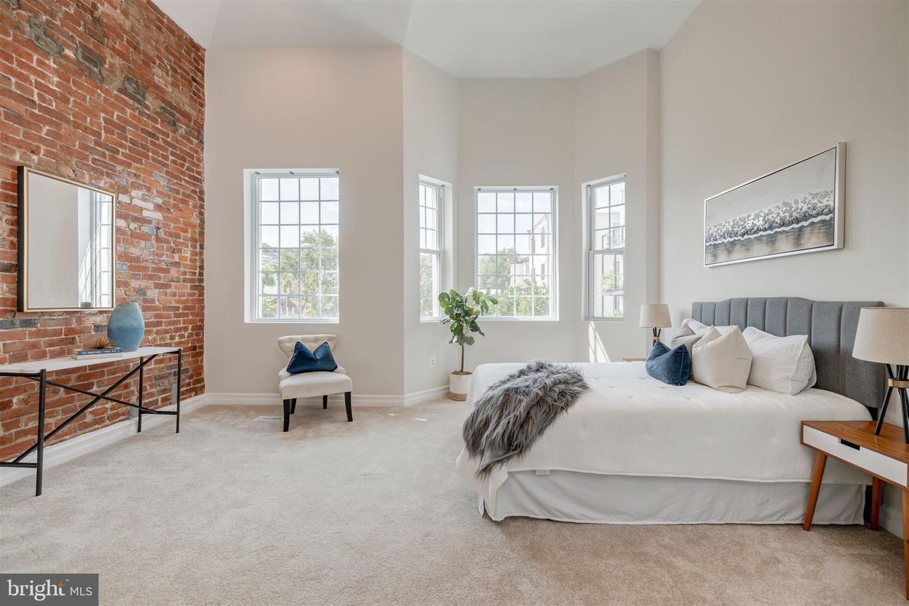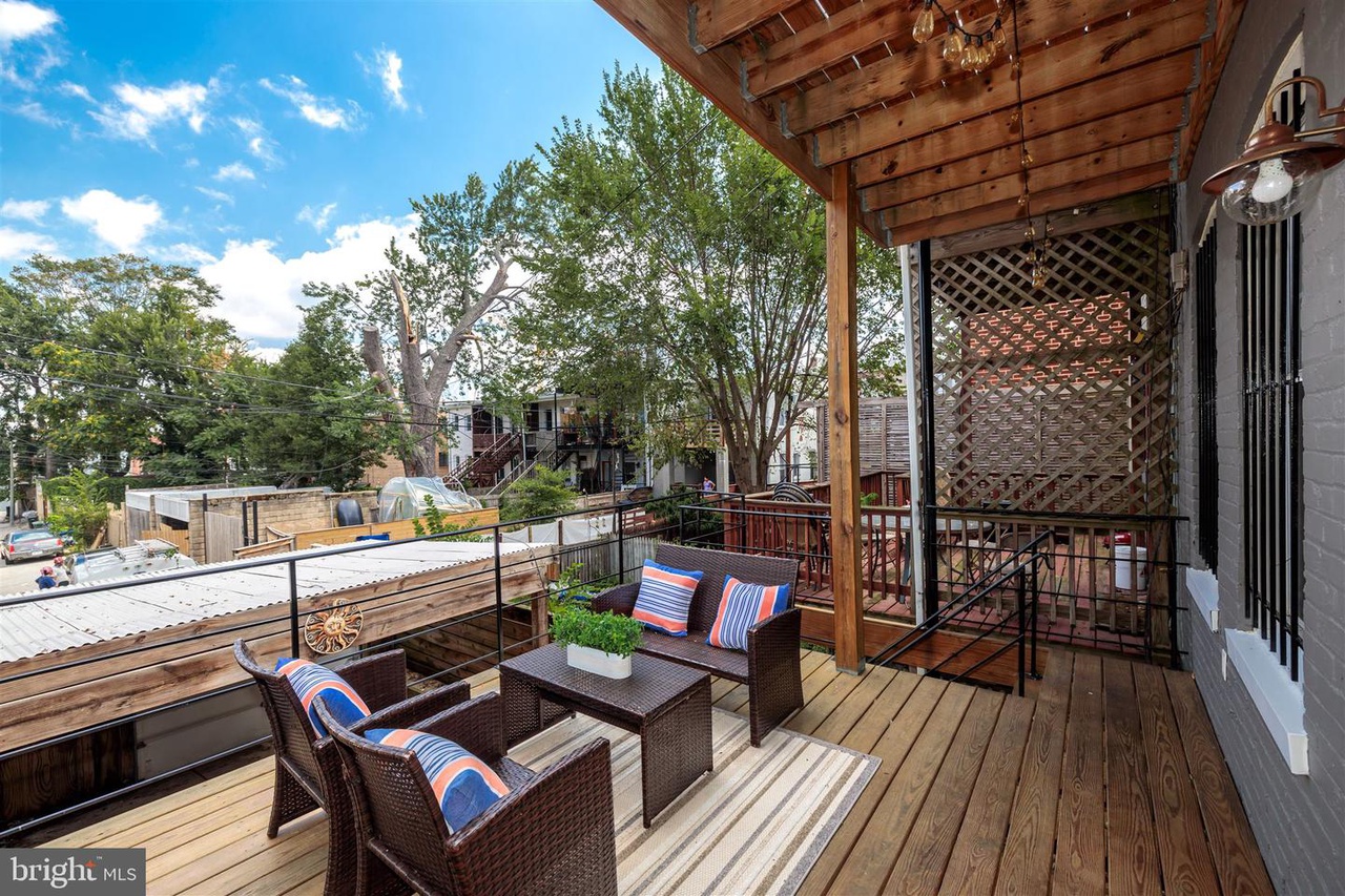 This grand three-story townhouse sits on a quiet street just steps from bustling Columbia Heights