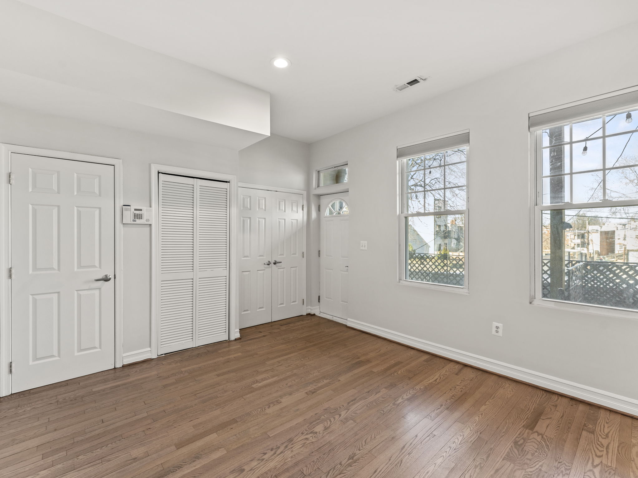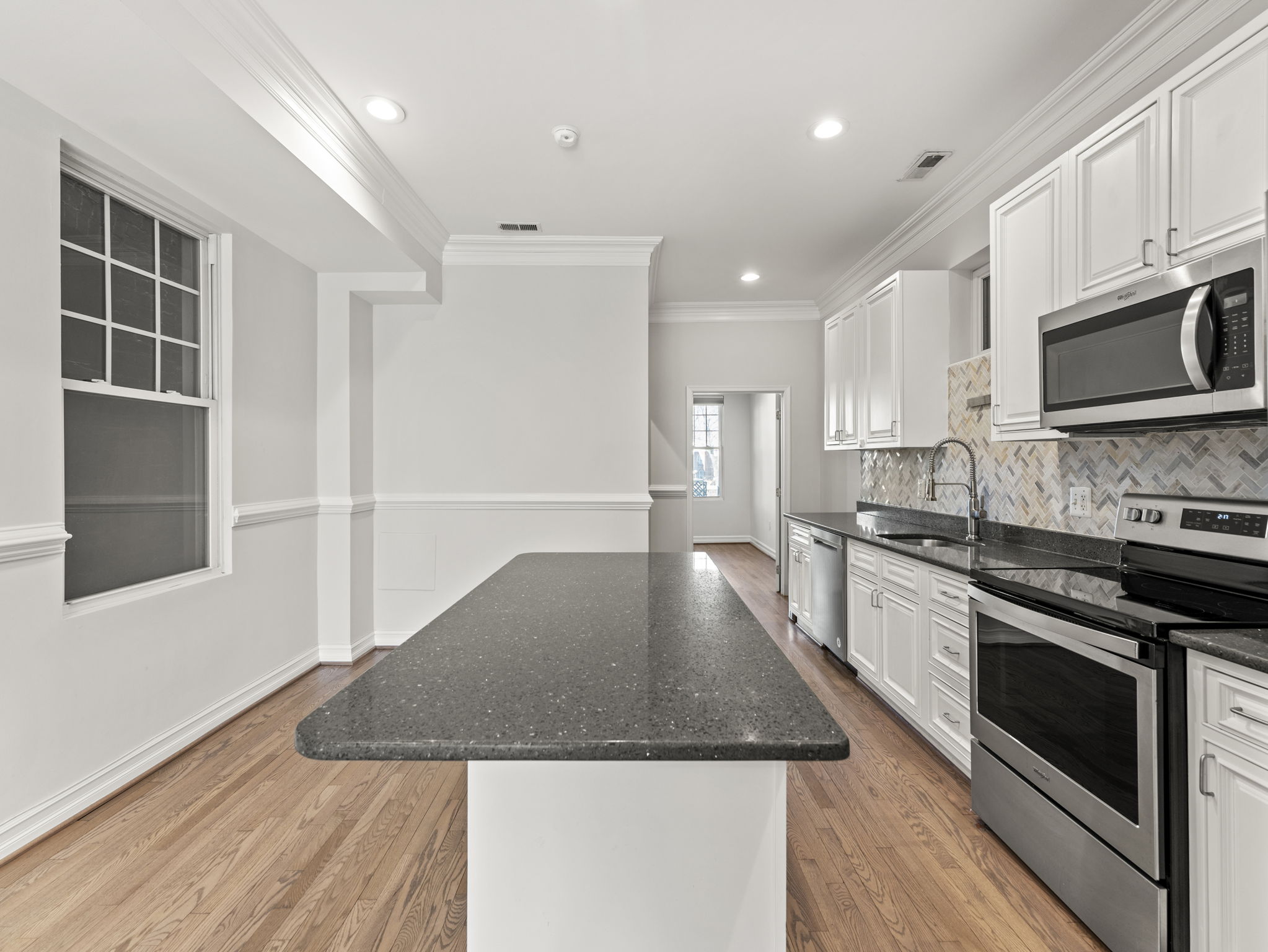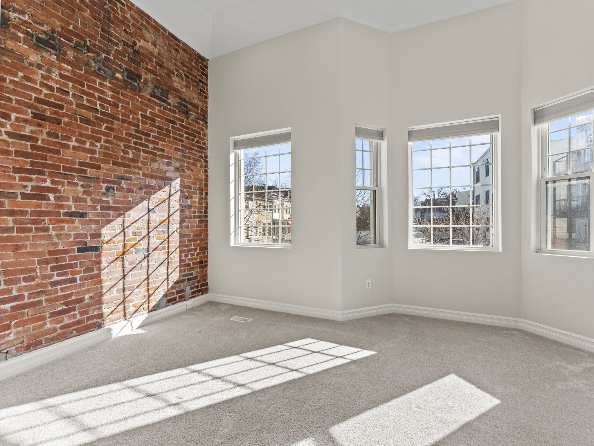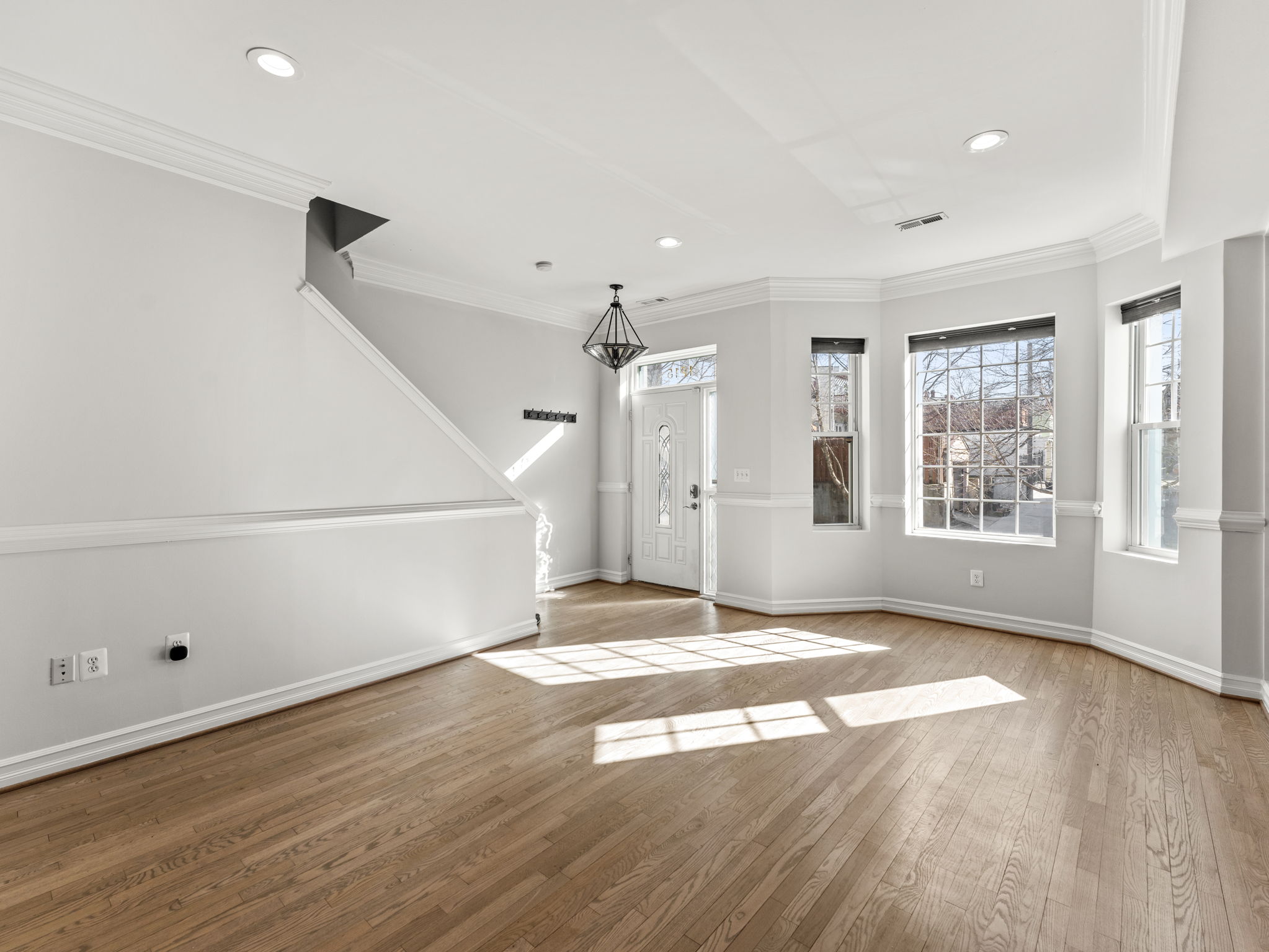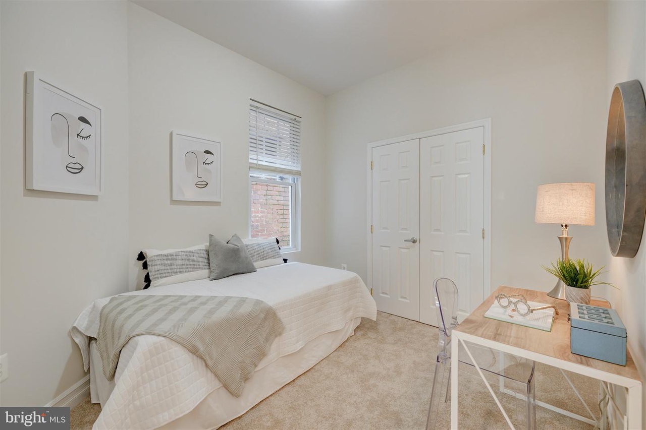 This grand three-story townhouse sits on a quiet street just steps from bustling Columbia Heights