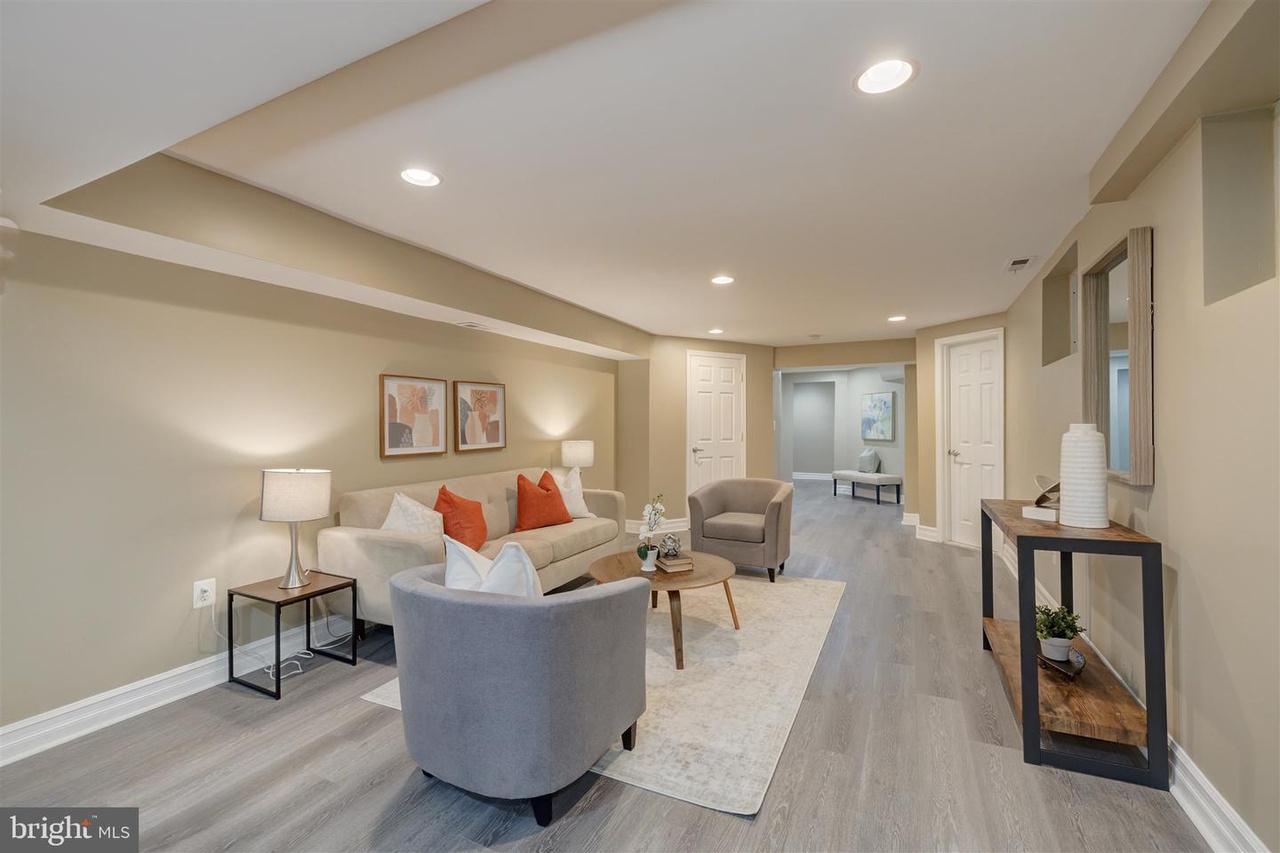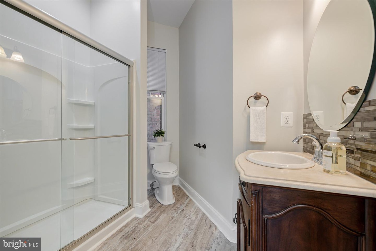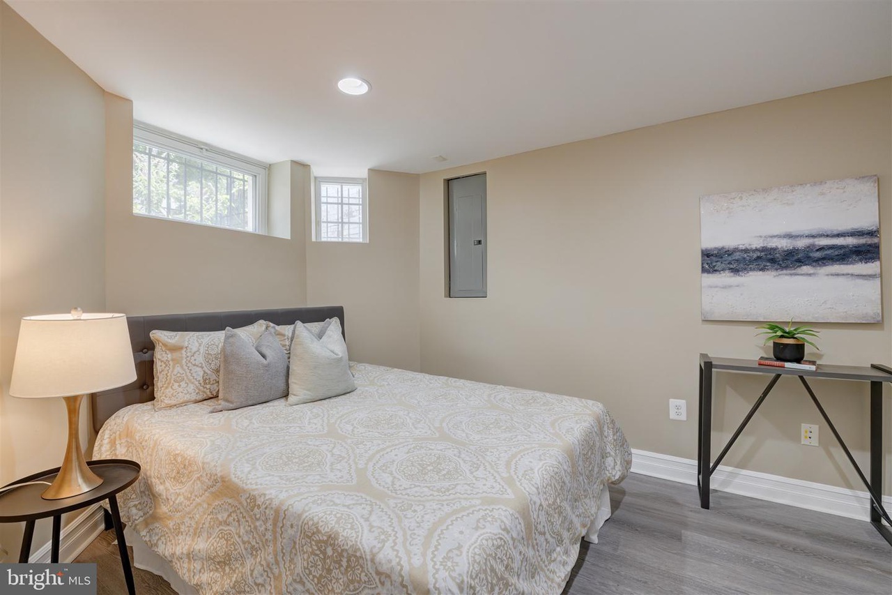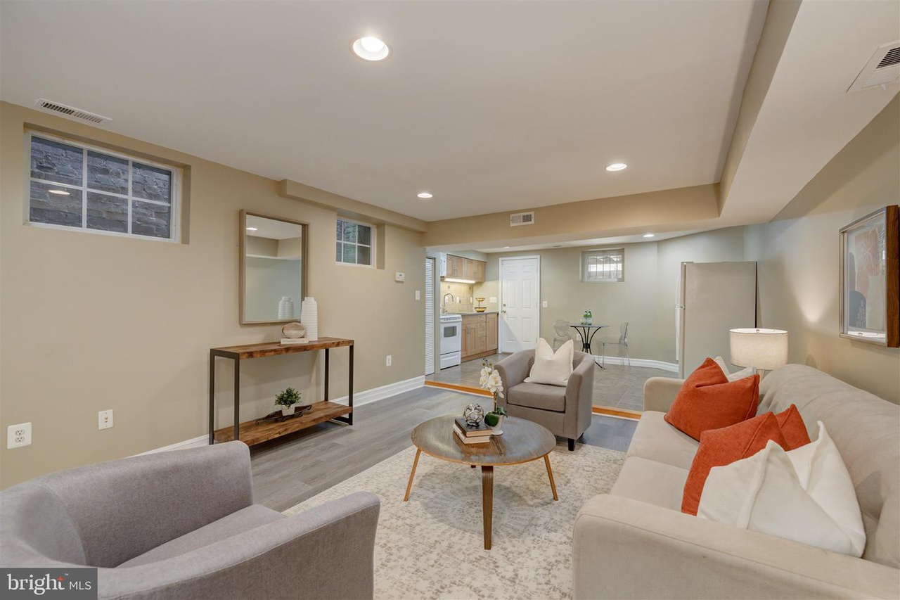 The lower floor features its own bedroom, bathroom, kitchen, living area and washer and dryer. The bedroom is large enough to accommodate a queen size bed and receives tons of natural light. It also enjoys a dedicated full bathroom. The lower floor also features its own large living area perfect for watching tv, a dedicated washer and dryer for the basement, and a walk-in closet for extra storage. The lower floor’s kitchen includes a sink, oven, stove, microwave, and full-size refrigerator. It has plenty of space for a complete dining set. From the lower floor, you can walk out directly to the rear parking area.