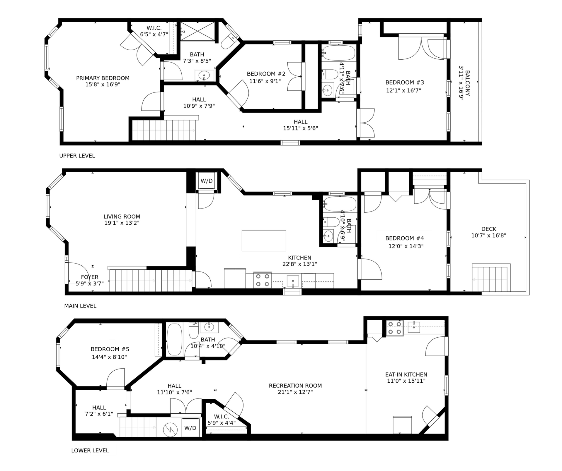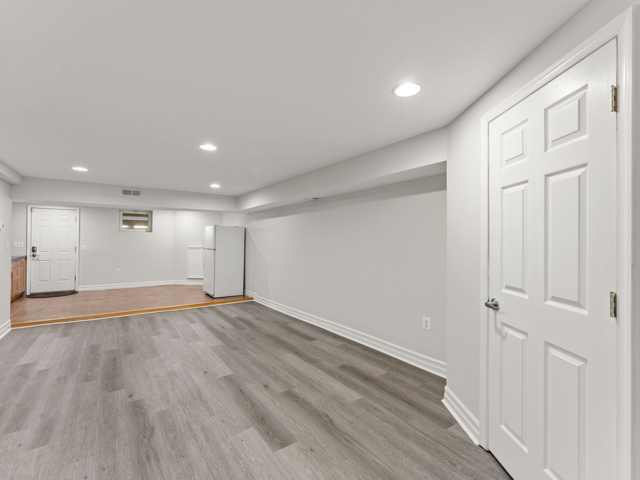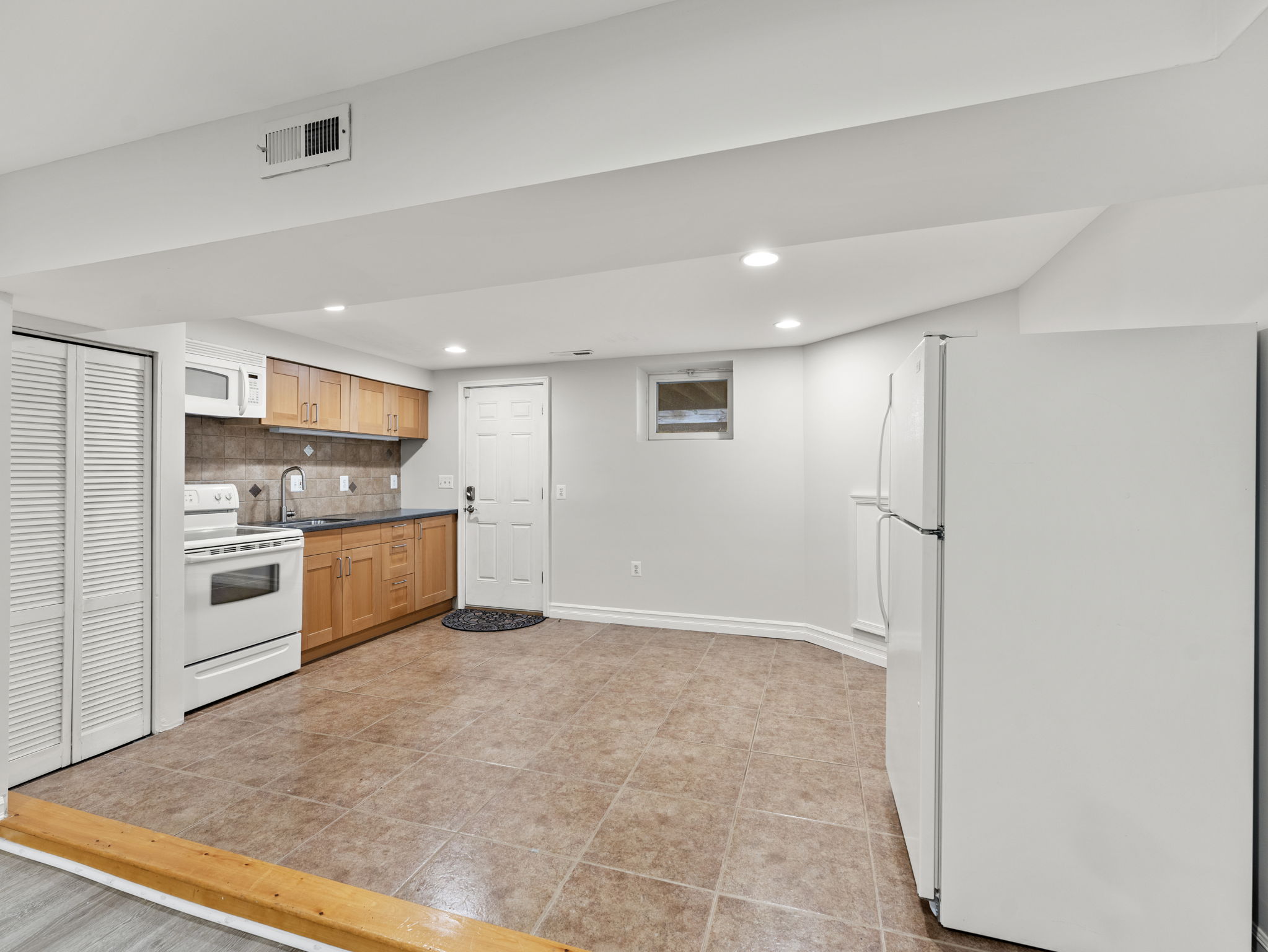 The lower floor features its own bedroom, bathroom, kitchen, living area and washer and dryer. The bedroom is large enough to accommodate a queen size bed and receives tons of natural light. It also enjoys a dedicated full bathroom. The lower floor also features its own large living area perfect for watching tv, a dedicated washer and dryer for the basement, and a walk-in closet for extra storage. The lower floor’s kitchen includes a sink, oven, stove, microwave, and full-size refrigerator. It has plenty of space for a complete dining set. From the lower floor, you can walk out directly to the rear parking area.