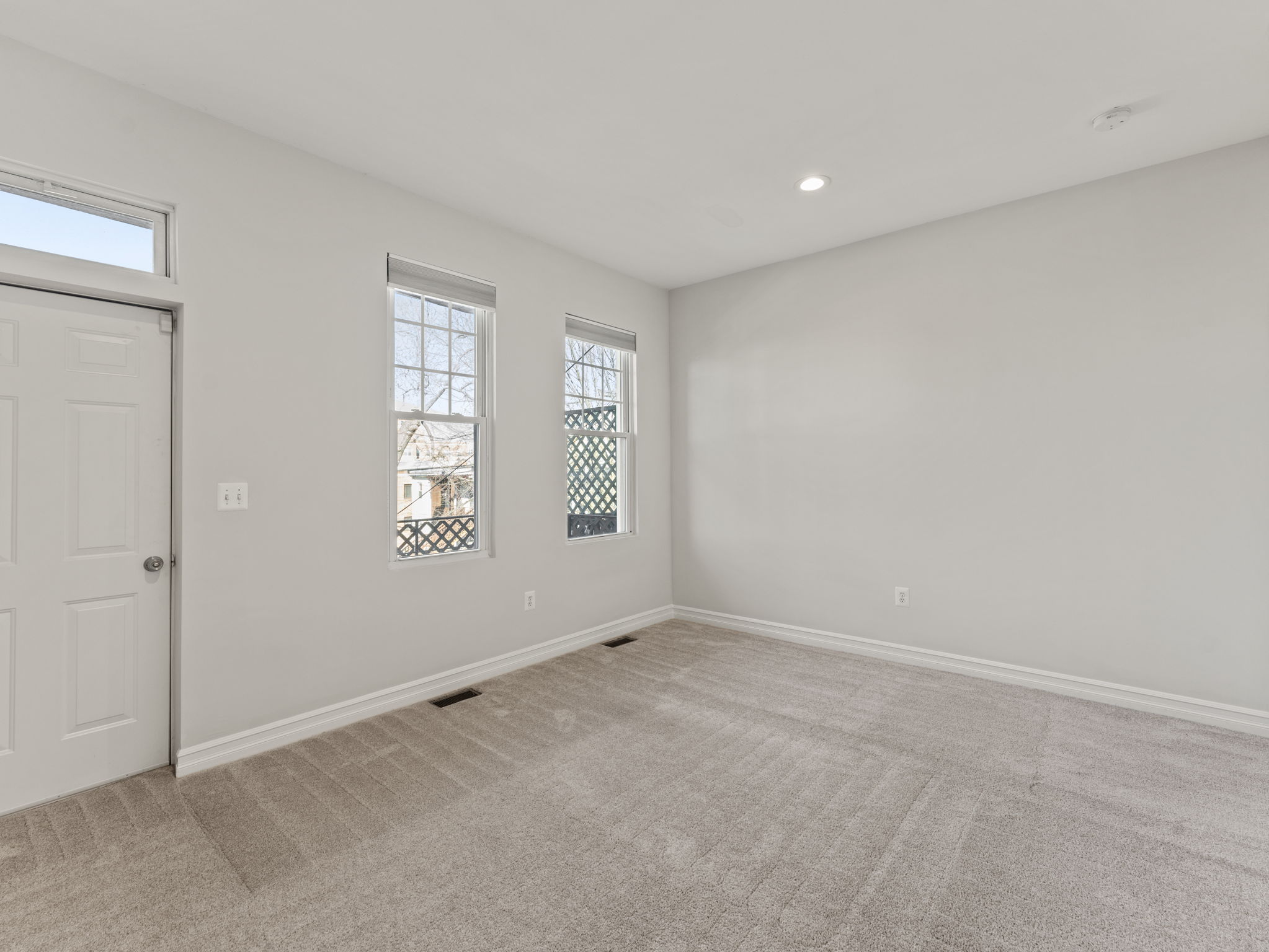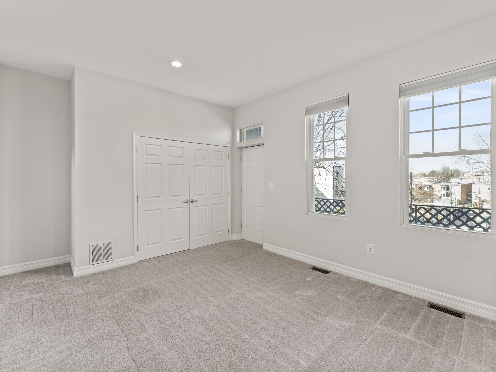 The primary suite features huge south-facing windows, a vaulted ceiling, walk-in closet, and en-suite bathroom. The second bedroom includes its own private balcony, a large closet, and an attached bathroom. The third bedroom on the upper floor is perfect as a bedroom, nursery, or home office. It features natural light and a large closet.