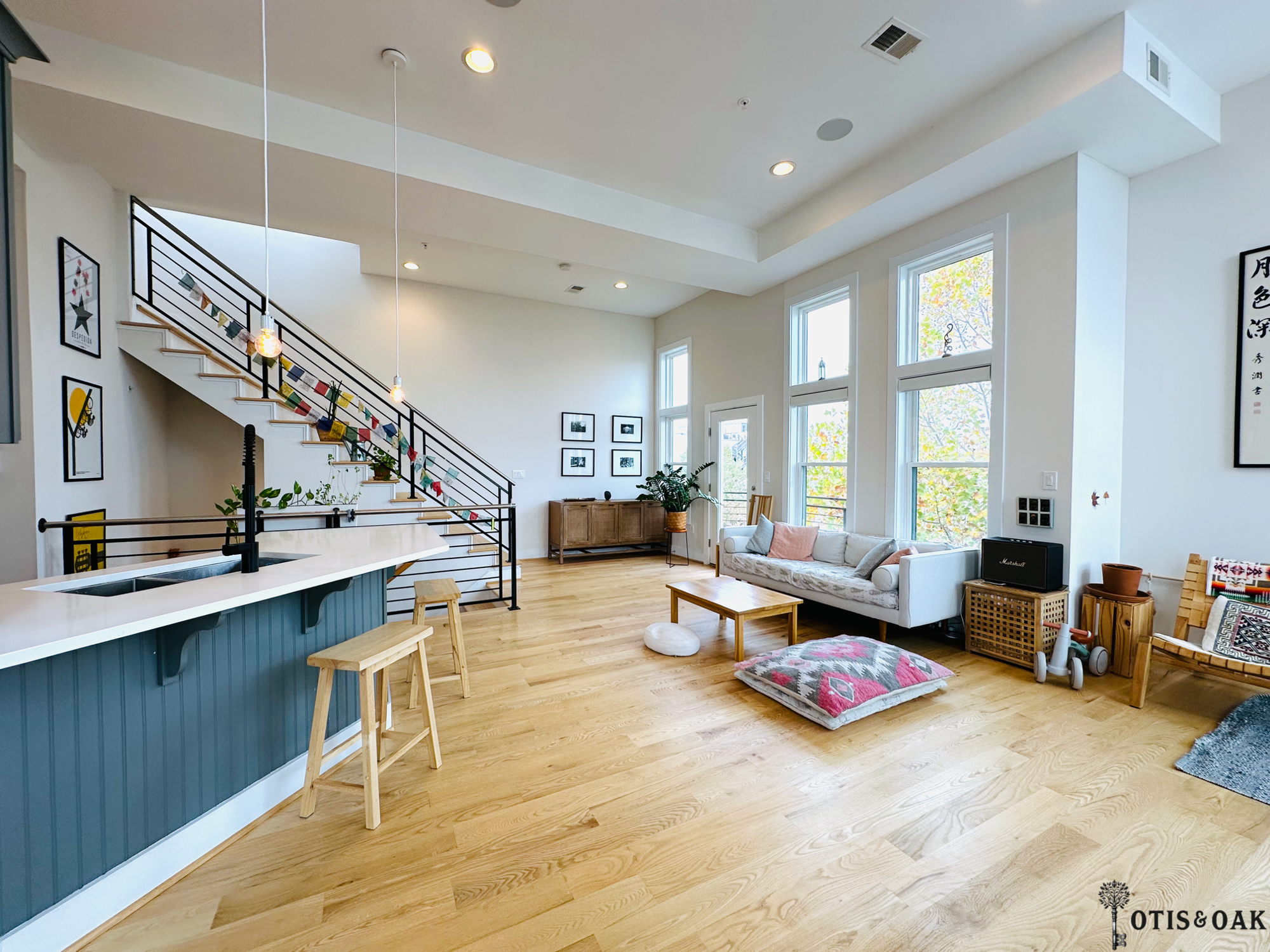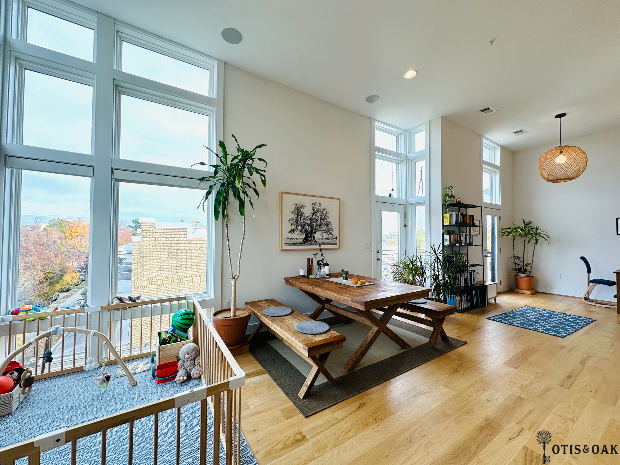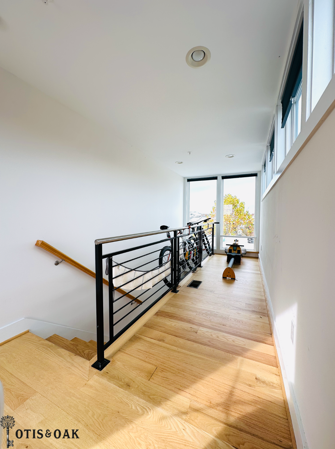 The additional loft space is ideal for a home gym, office, or creative space.