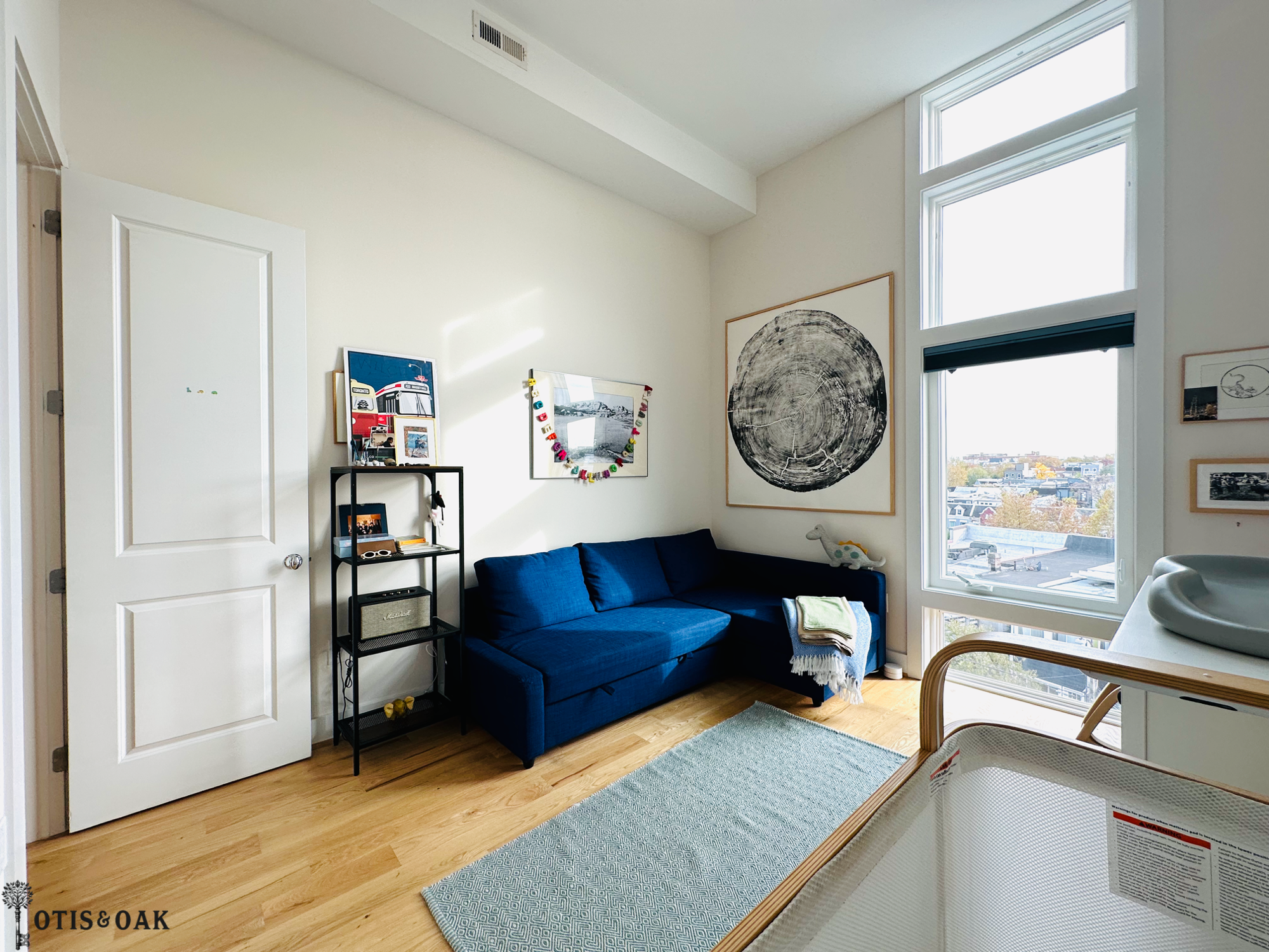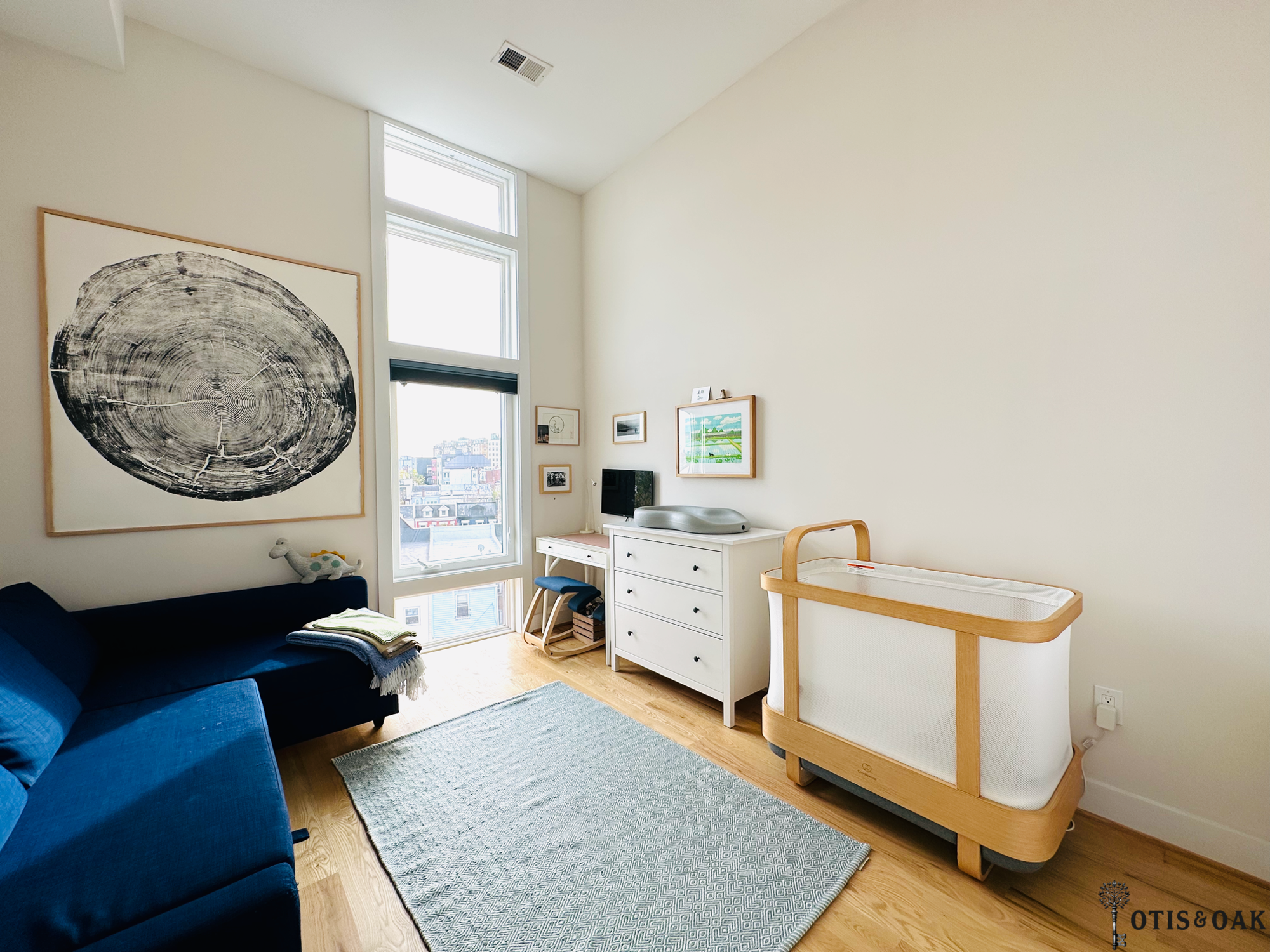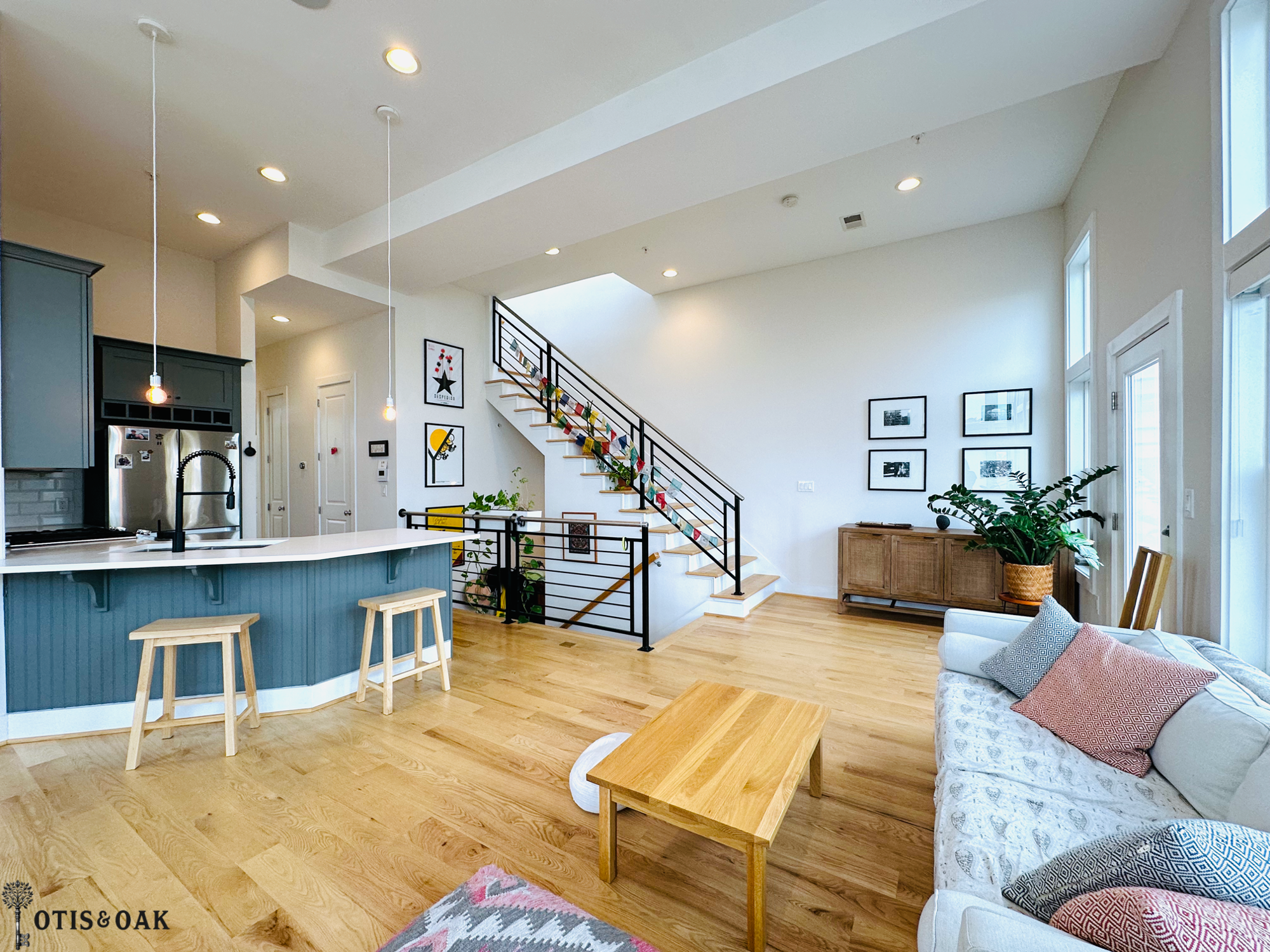 The additional loft space is ideal for a home gym, office, or creative space.