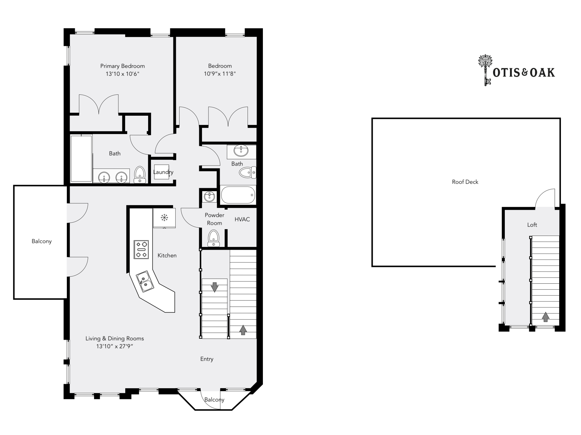 Roof deck and balconies